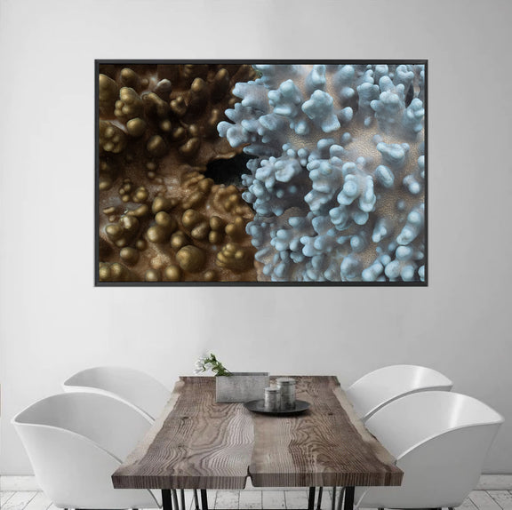 A study in contrast, balance and biological wonder, this artwork invites you to contemplate the delicate boundaries that define life on a coral reef.