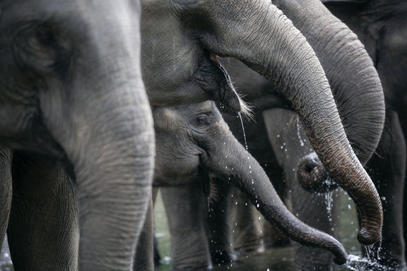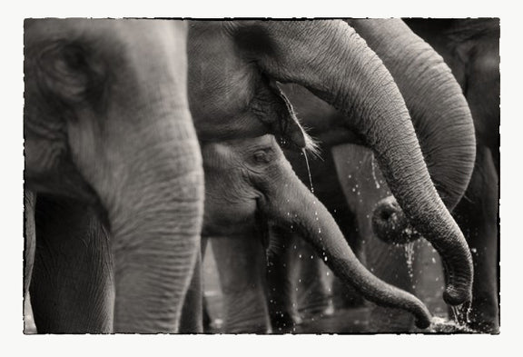 Eyes Forward captures a powerful moment in the Sumatran rainforest ~ a herd of elephants pausing to drink with their gaze unified and steady. Photographed during a 2010 expedition with the Sumatran Ranger Project, this image reflects the quiet strength and collective awareness of these remarkable animals.
