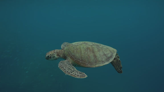 Gliding Turtle captures a serene and timeless moment as an ancient Green Sea Turtle (Chelonia Mydas) drifts effortlessly through the water, bathed in the soft glow of early morning light filtering from above. With each slow, steady movement, the "old man of the sea" glides past, embodying the quiet wisdom and elegance of a life spent in the ocean’s embrace.