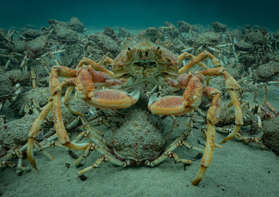 I Come In Peace captures the extraordinary gathering of Giant Spider Crabs (Leptomithrax gaimardii) as they converge in the shallow, cool waters of southern Australia. This breathtaking spectacle occurs annually, when thousands of crabs migrate en masse across the ocean floor to moult ~ shedding their old shells in a vulnerable yet vital act of renewal.