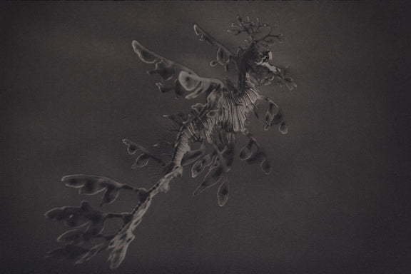 This palladium print reproduction presents a close-up portrait of the Leafy Sea Dragon (Phycodurus eques), one of the ocean’s most extraordinary and elusive creatures. With its delicate, leaf-like appendages and intricate detail, the sea dragon appears almost mythical ~ a living sculpture designed by nature and refined by time.