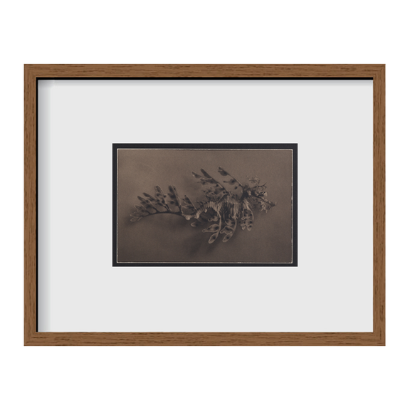 This palladium print reproduction presents a close-up portrait of the Leafy Sea Dragon (Phycodurus eques), one of the ocean’s most extraordinary and elusive creatures. With its delicate, leaf-like appendages and intricate detail, the sea dragon appears almost mythical ~ a living sculpture designed by nature and refined by time.