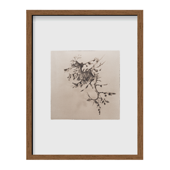 This palladium print reproduction presents a close-up portrait of the Leafy Sea Dragon (Phycodurus eques), one of the ocean’s most extraordinary and elusive creatures. With its delicate, leaf-like appendages and intricate detail, the sea dragon appears almost mythical ~ a living sculpture designed by nature and refined by time.
