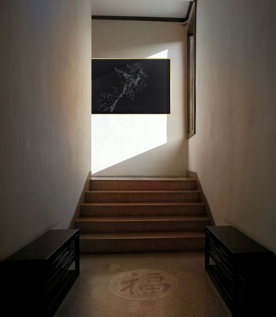 This palladium print reproduction presents a close-up portrait of the Leafy Sea Dragon (Phycodurus eques), one of the ocean’s most extraordinary and elusive creatures. With its delicate, leaf-like appendages and intricate detail, the sea dragon appears almost mythical ~ a living sculpture designed by nature and refined by time.