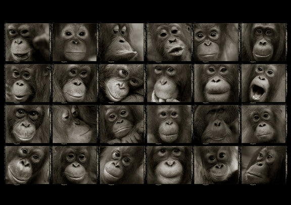 The Displaced is a powerful montage of orphaned orangutans whose lives have been disrupted by human impact—forest clearing, habitat loss, and poaching. In this sepia-toned collection of portraits, Liam Lynch captures the raw emotion and vulnerability of each young ape, revealing a depth of personality and innocence that is impossible to overlook.